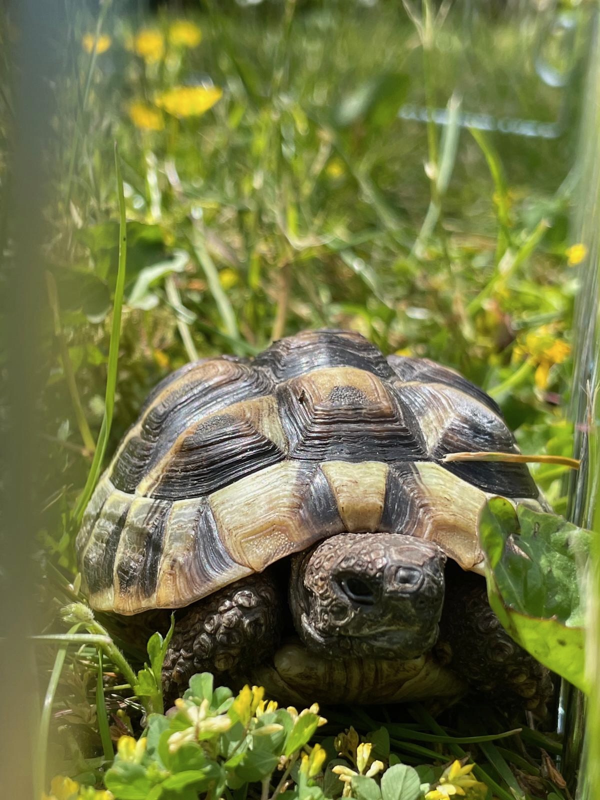 Sie rennen nicht, sie hetzen nicht – sie sind der Inbegriff von Tiefenentspannung: unsere zwei Schildkröten! Mit Abstand die faulsten Bewohner auf dem Hof – und mächtig stolz drauf.